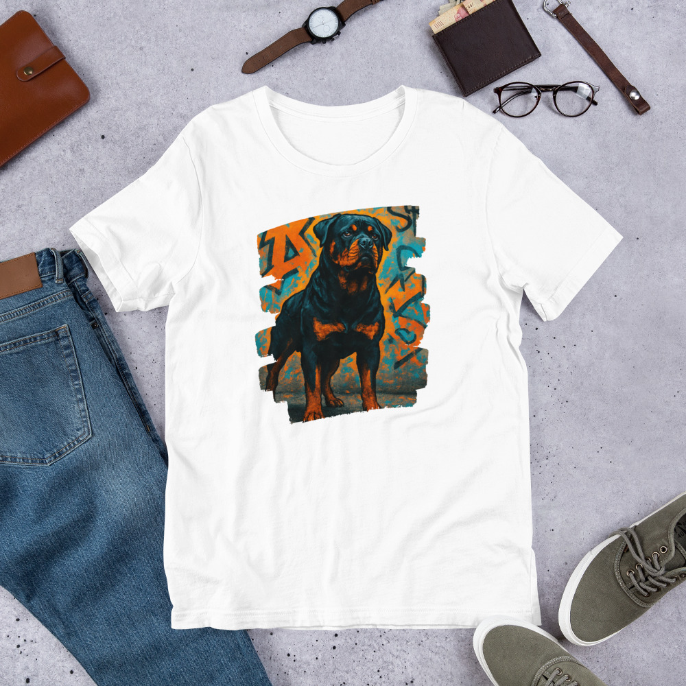 Piristä sinun tai ystäväsi päivää tällä rohkealla graffitityylisellä rotikka t-paidalla!