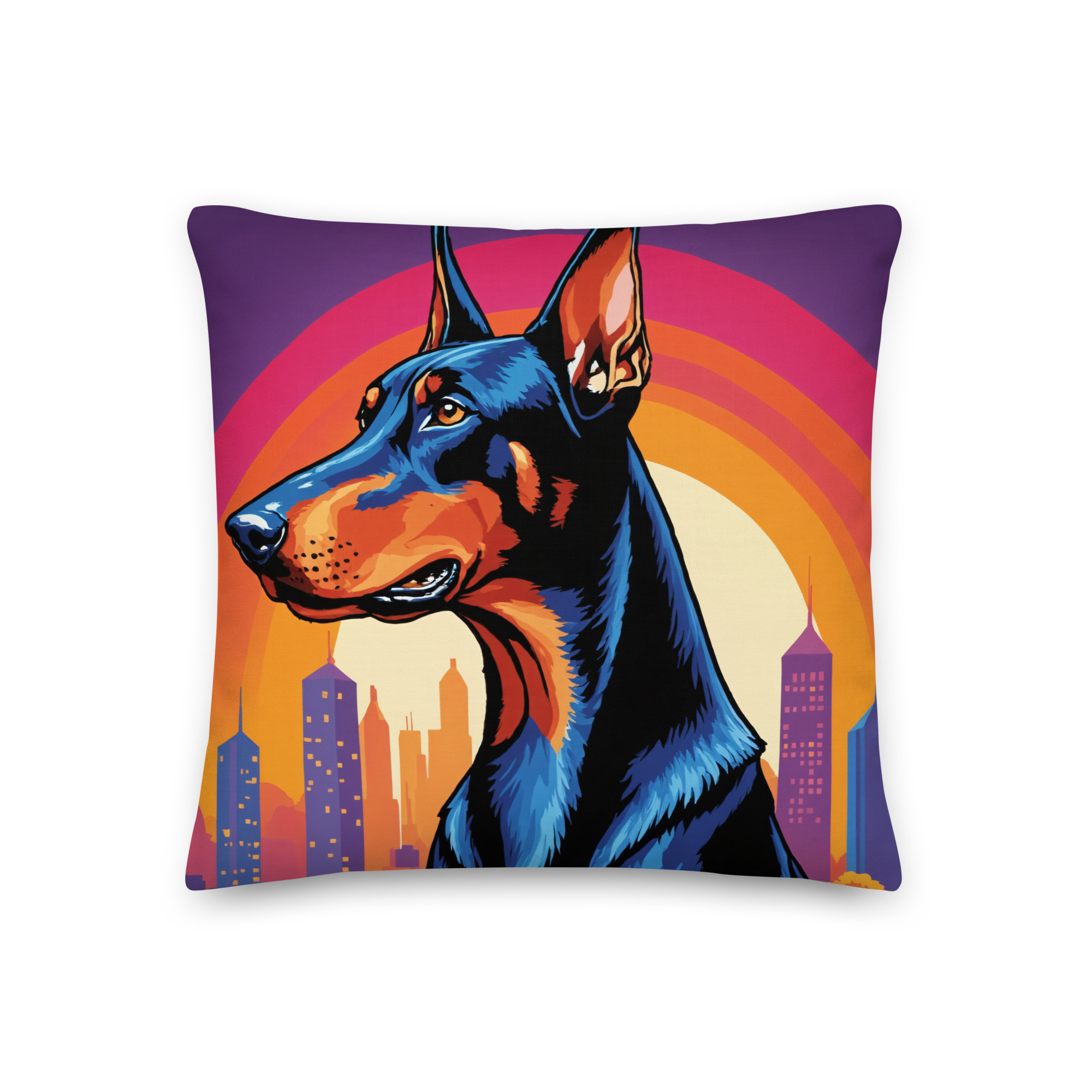 Tuo kotiisi ripaus rohkeaa designia tällä upealla pop art -henkisellä dobermann-tyynyllä! Eloisa ja moderni kuvitus tekee tyynystä katseenvangitsijan, joka sopii täydellisesti olohuoneeseen, makuuhuoneeseen tai vaikkapa lahjaksi koirien ystävälle.